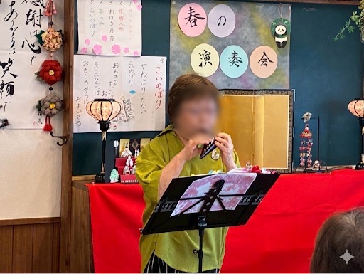 HOME > イベント > イベント スタッフブログ ヌック ヌックの演奏会! 投稿日:2026年4月3日 Twitter Share Google+ Pocket B!Hatena LINE 3月31日(火)お琴、オカリナ、草笛による 初企画【ヌックの演奏会♪】を開催しました。 当日はたくさんの方にお越しいただき、「楽しかった😊」と 嬉しい感想もたくさん いただきました♡ また 夏、秋、冬 演奏会を続けていけたらと思っています😊 その際は ぜひ また遊びに来て下さいね! Twitter Share Google+ Pocket B!Hatena LINE この記事を書いた人 最新記事 I・H お友達と企画盛沢山の(下道)小旅行ドライブするのが大好き♪ 新たな自分の発見を楽しみながら、お仕事頑張るぞ! 2026/04/03ヌックの演奏会! 2026/04/034月号 ヌックイベントチラシ! 2026/03/06ヌックのボッチャ大会! I・Hの記事をもっと見る -イベント, スタッフブログ, ヌック